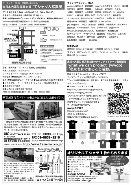 ◆アーティスト58名写真家4名による 東日本大震災復興支援「Tシャツ&写真展」