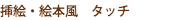 強弱のある筆の輪郭線を活かしたイラスト。和風と洋風がある。photoshop